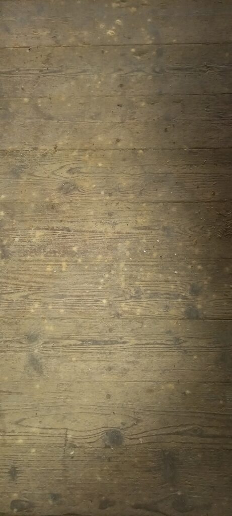 Mittlerweile bereitet mir der Holzwurm im Mühlengebäude Kopfzerbrechen. Die Befreiung der Mühle von Staub, Mehl und Kot hat offensichtlich dazu geführt, dass die Lebensbedingungen für den Wurm in der Mühle wieder attraktiv geworden sind. Man sieht es besonders an den kleinen aufgeworfenen hellen Häufchen auf der Oberseite der Fußböden. Leider habe ich noch keine Lösung. Gift, welches auch uns schadet, ist ausgeschlossen. Für hilfreiche Tipps wäre ich wirklich dankbar.