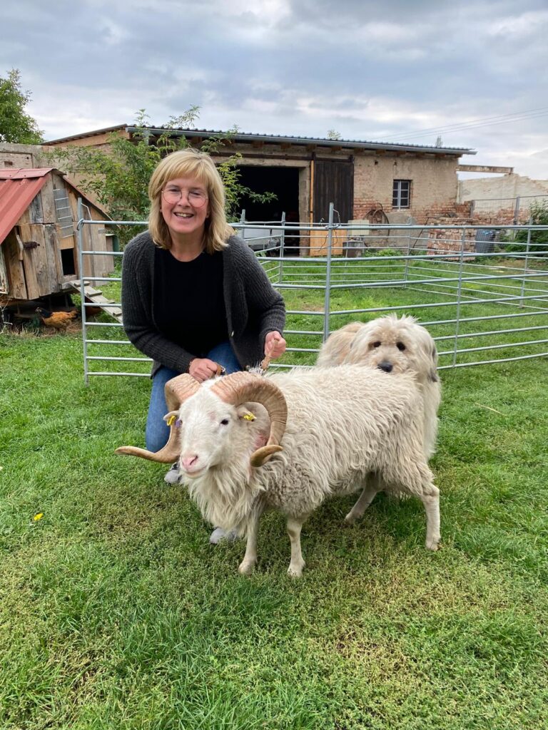Für die Rasse Skudde, deren Zucht nun verstärkt fortgeführt werden soll, nahmen wir an einer Auktion teil. Diese fand im Rahmen der Herdbuchaufnahme durch den Landesschafzuchtverband Berlin-Brandenburg im September in Lehnin statt. Wir ersteigerten den einjährigen, gekörten Skuddenbock mit dem Namen Hain aus der Zucht von Familie Behling. Nach einer Quarantänezeit und einem Gesundheitsscheck durch den Tierarzt durfte er schließlich zu seiner kleinen Deckgruppe.