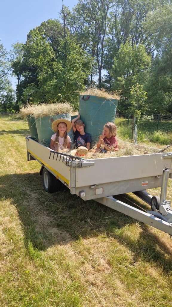 Nach langem Warten auf das ideale Wetter konnten wir ohne Regenüberfälle das Heu machen. Am letzten Tag gab es noch begeisterte Unterstützung durch die Enkel.