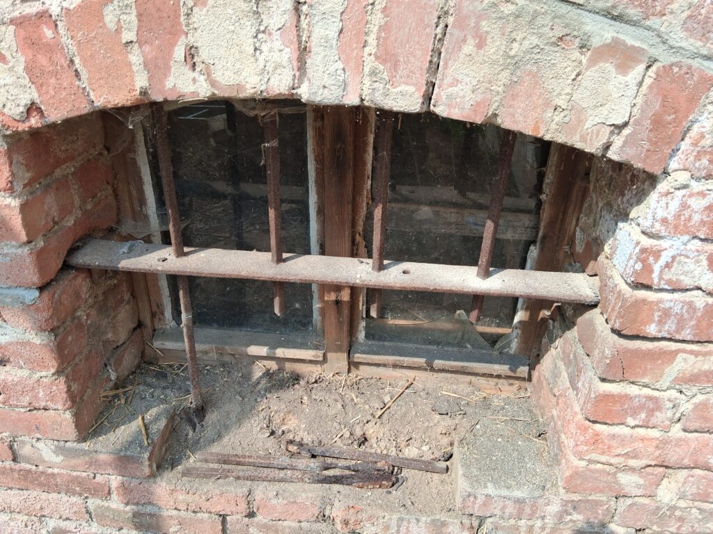 Auch die Gitter vor den Fenstern wurden entfernt, weil sie mittlerweile das Mauerwerk stark aufgesprengt hatten.
