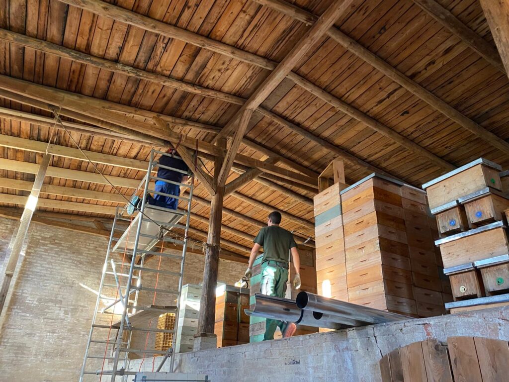 Vier Wochen waren eingeplant, inklusive der Solaranlagenerweiterung an der Wand. Parallel mussten im hinteren Bereich von innen neue Sparren zur Verstärkung eingebracht werden. Für diese wackelige Aktion halfen Tobias und Steven – ohne deren Unterstützung wäre das nicht möglich gewesen. Großen Dank auch an Mario, der mir trotz des starken Windes am vorletzten Tag noch die Rinne gelötet hat. So war am letzten Tag die letzte Schweißbahn gelegt und das Dach wieder dicht.